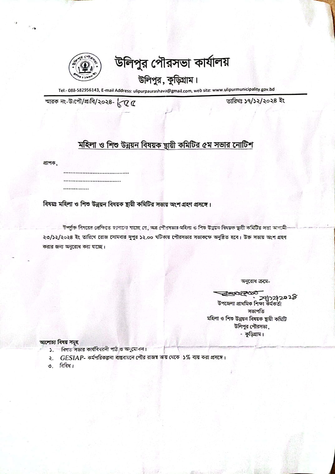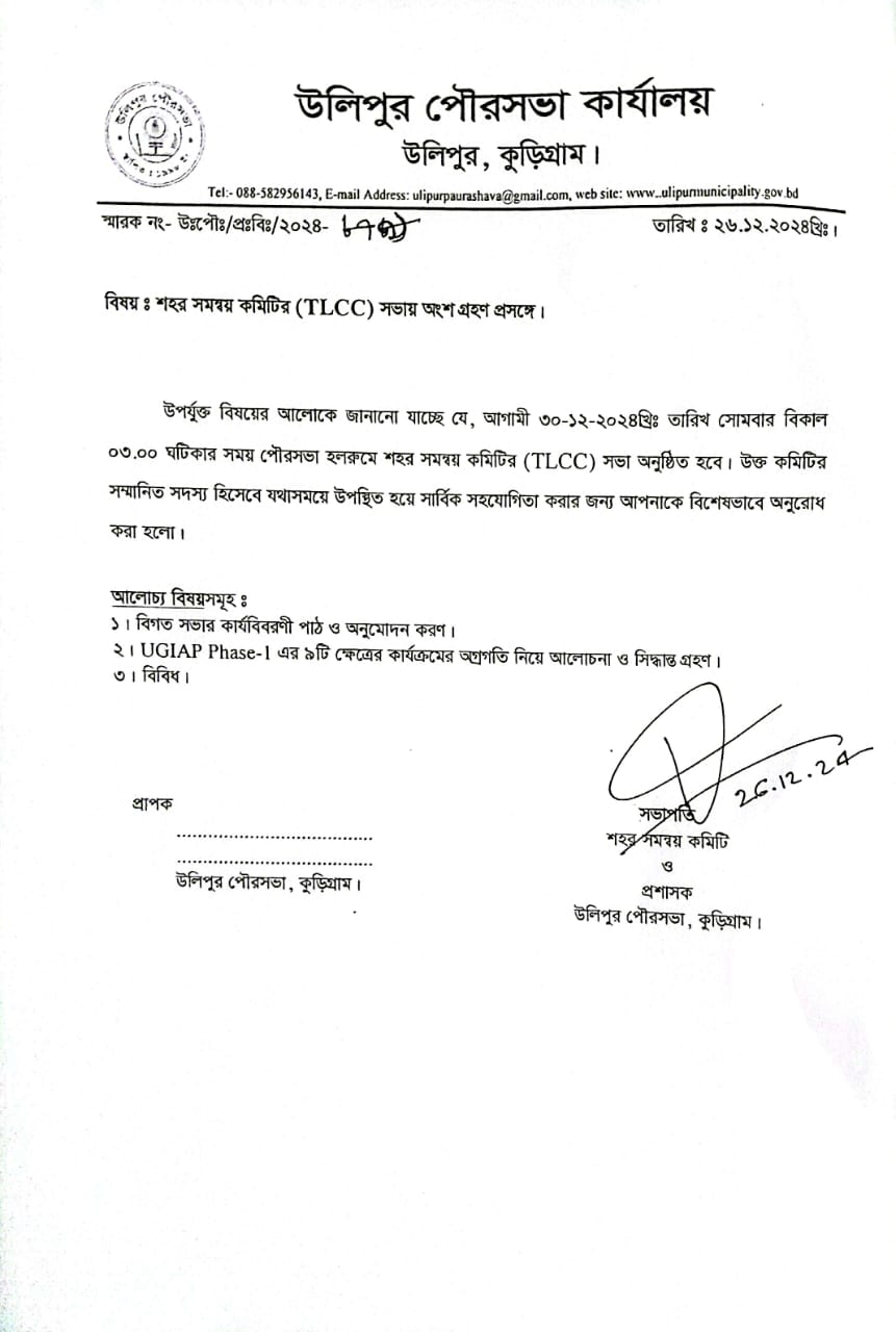 | ৮ | শহর সমন্ময় কমিটির (TLCC) সভা (অক্টোবর-ডিসেম্বর/২০২৪) প্রসঙ্গে | | | ২৬-১২-২০২৪ | দেখুন |